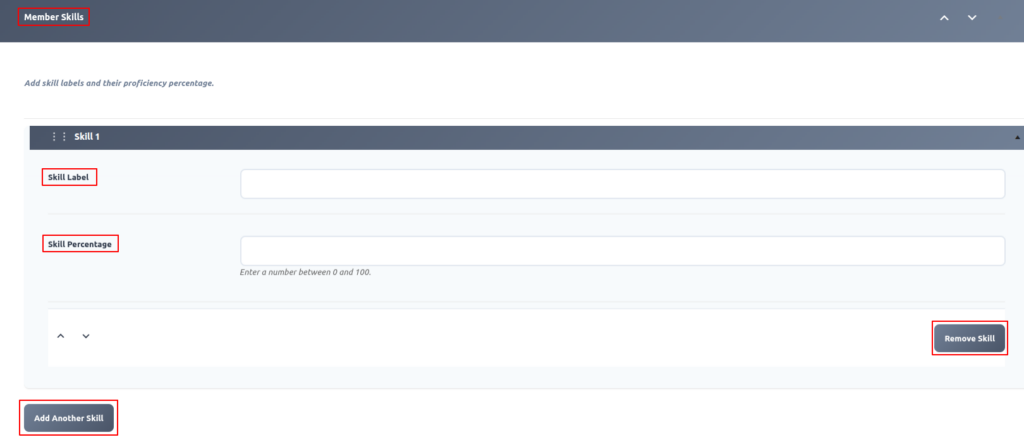 Skill : Add multiple skill tags with progress bars or rating indicators..