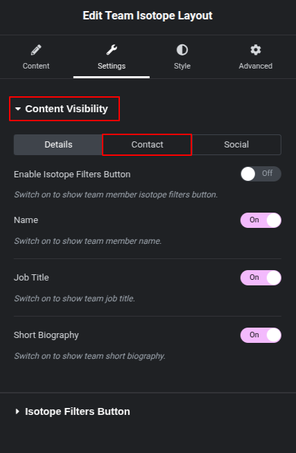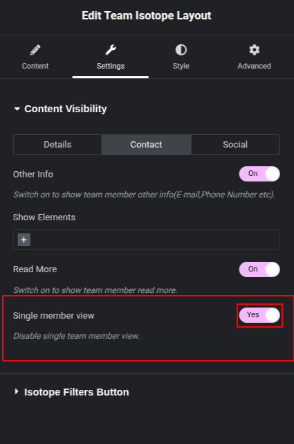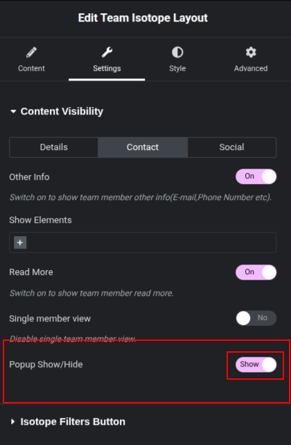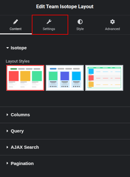 - Open your page in Elementor where the Team Isotope Layout widget is placed.