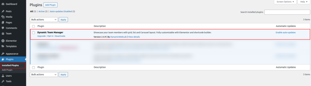 After activating the plugin you will get the “Dynamic Team Manager” menu in WordPress admin navigation.