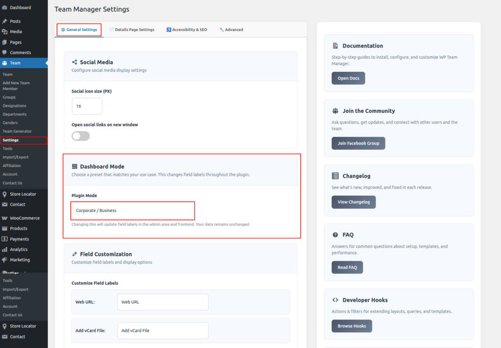 Dashboard Mode allows you to switch the plugin’s terminology and field labels based on your specific use case. This feature is designed to make the admin interface and frontend output more intuitive by using language that matches your project type.