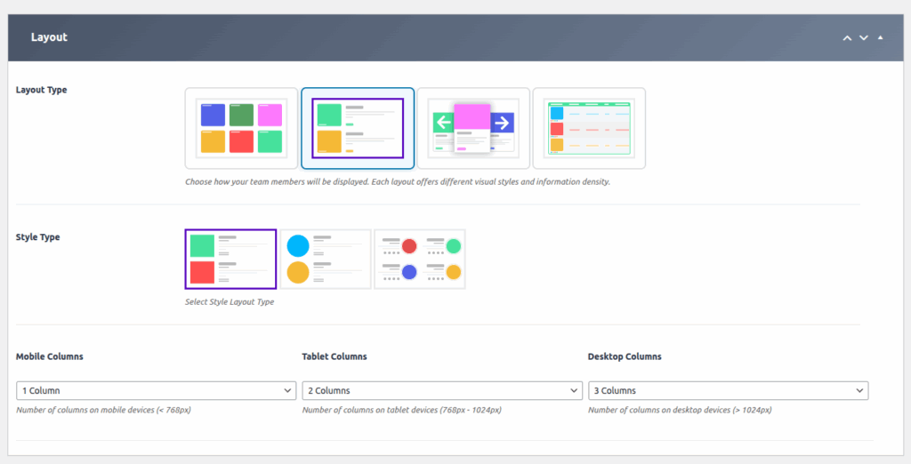 - From the Layout Type options (shown in the provided image), choose the style that best fits your design: